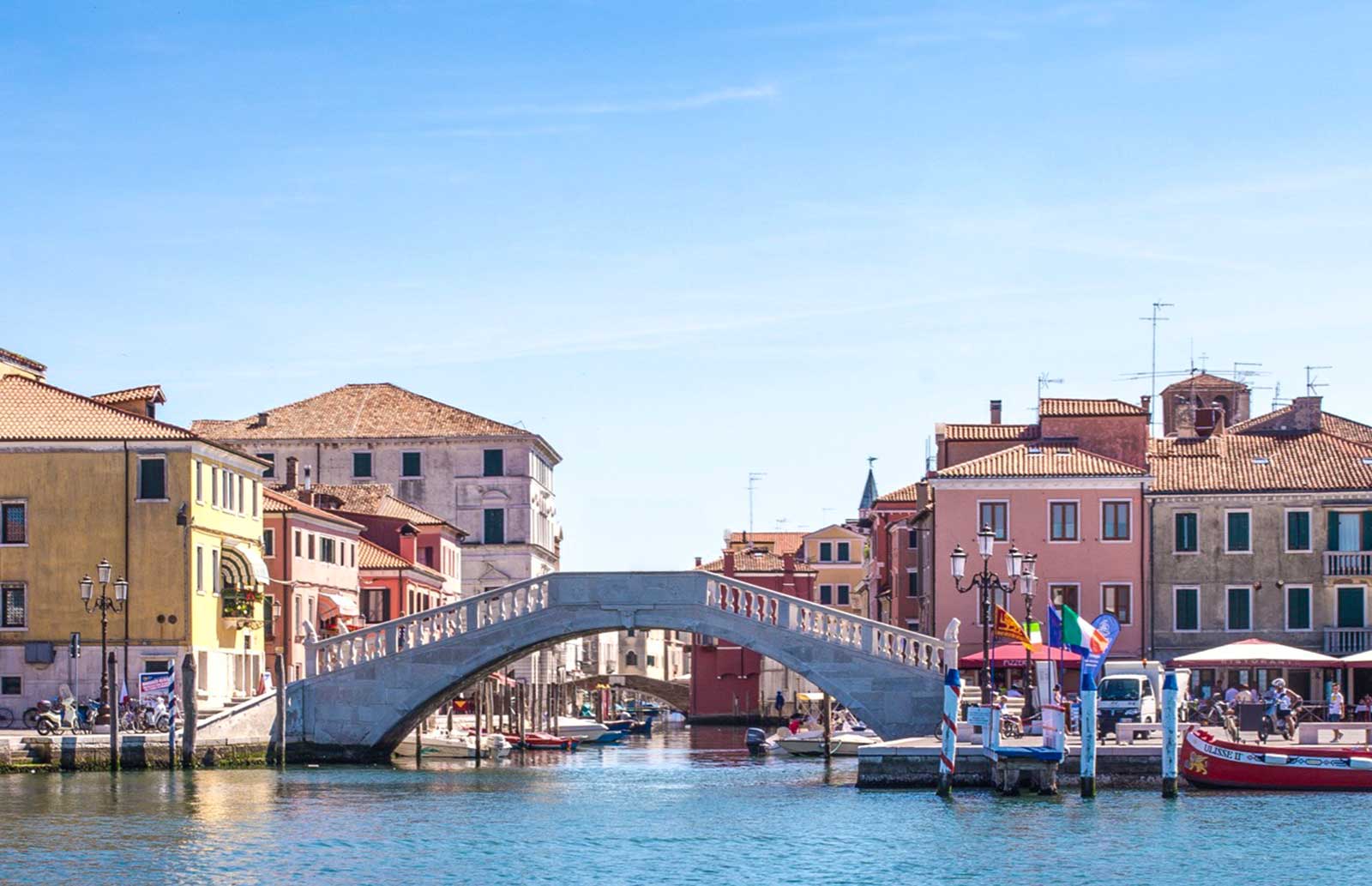 Chioggia is crossed by three canals overlooking elegant Venetian-style buildings and colorful houses.
