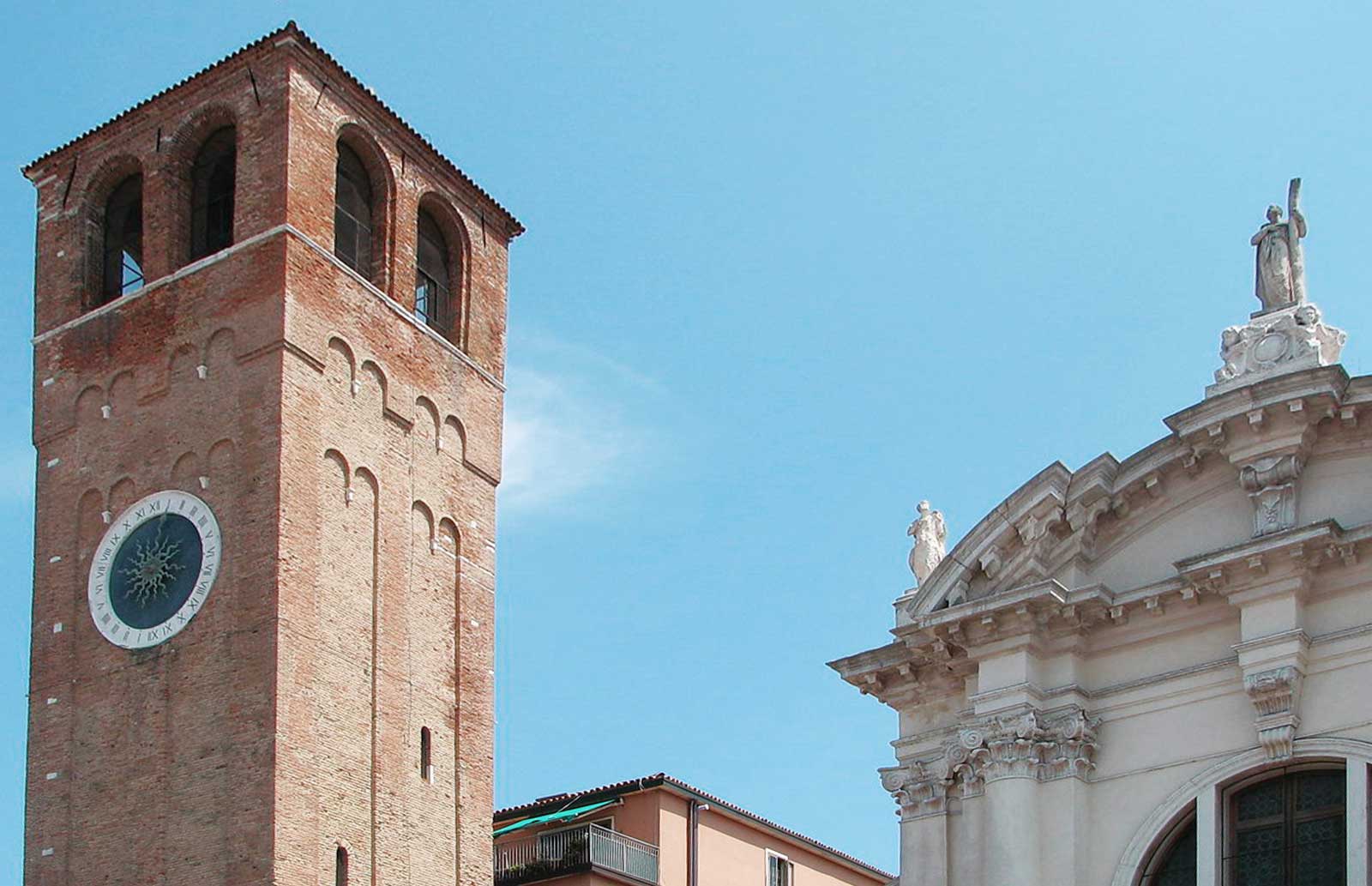 The bell tower of Sant’Andrea also known as the Clock Tower, 30 meters high, contains the oldest tower clock in the world, dated 1386. Inside it there is a vertical museum with several floors and on the top the panoramic terrace from where you can admire the landscape of the whole Chioggia.